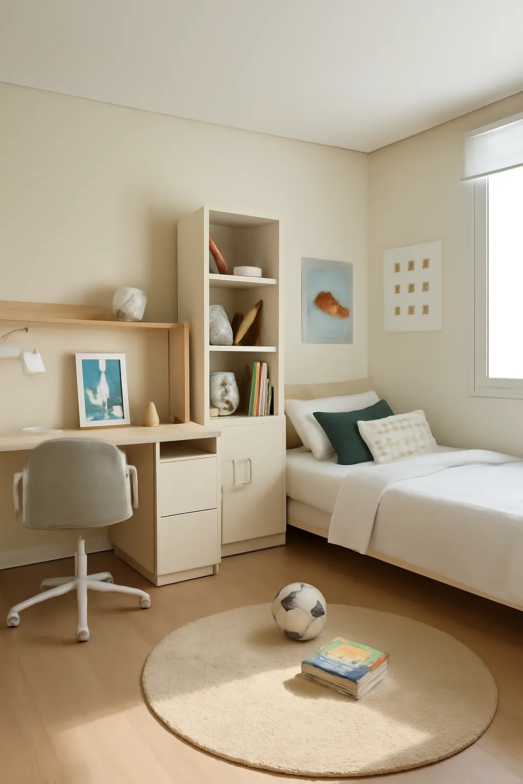 아이들이 좋아하는 캐릭터나 색상의 액세서리와 장식품을 활용하여 방을 꾸며보세요. 한샘의 장식 소품을 활용하면 방의 분위기를 한층 더 따뜻하고 친숙하게 만들 수 있습니다. 예를 들어, 축구공 모양의 장식이나 귀여운 인형 등을 배치하면 방이 더욱 활기차고 아이의 개성을 잘 표현할 수 있습니다.